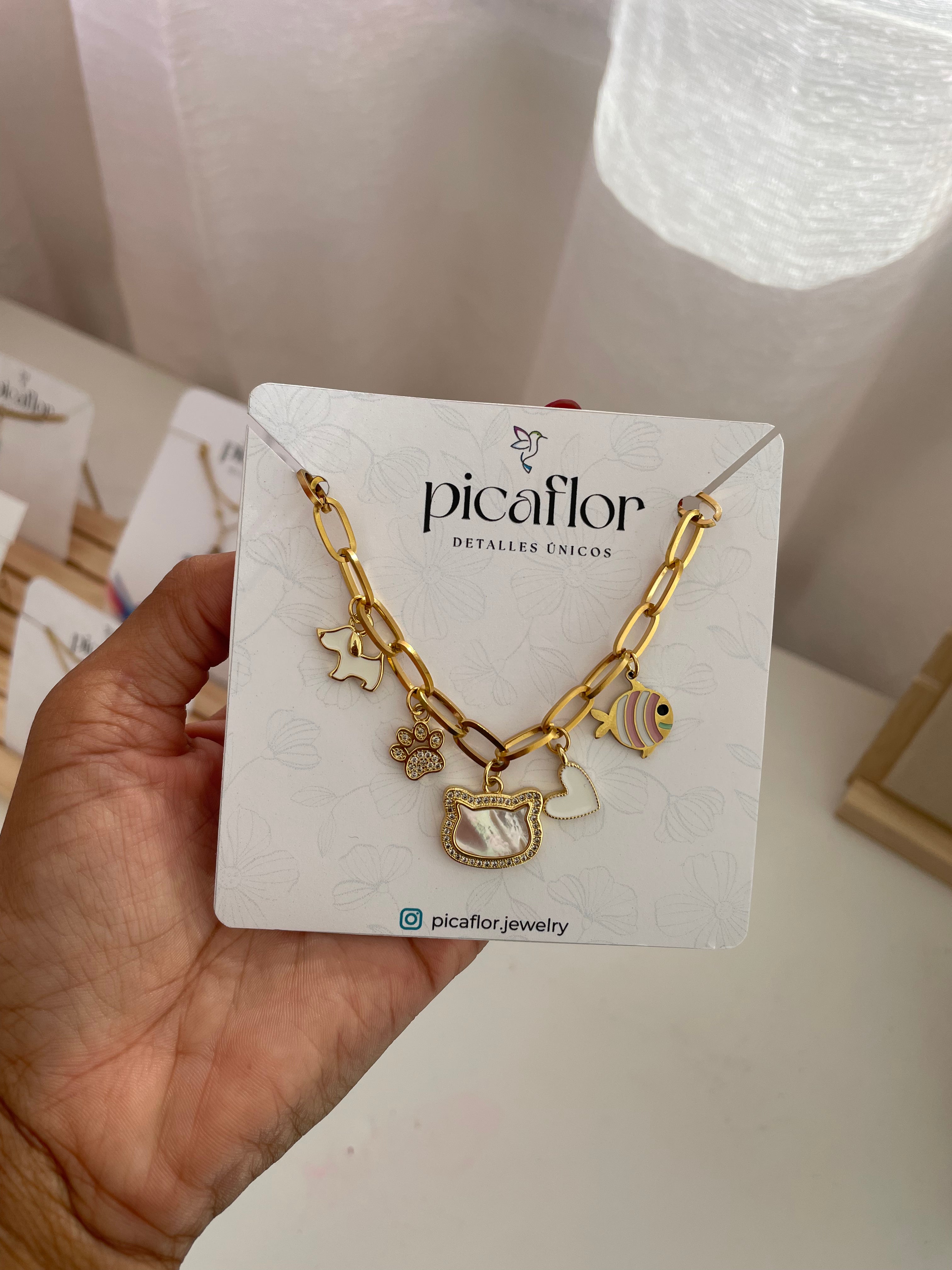 Collares con charms prediseñados.Cada pieza es especial y no se repite, así que llévate el tuyo antes de que se agote.😊
